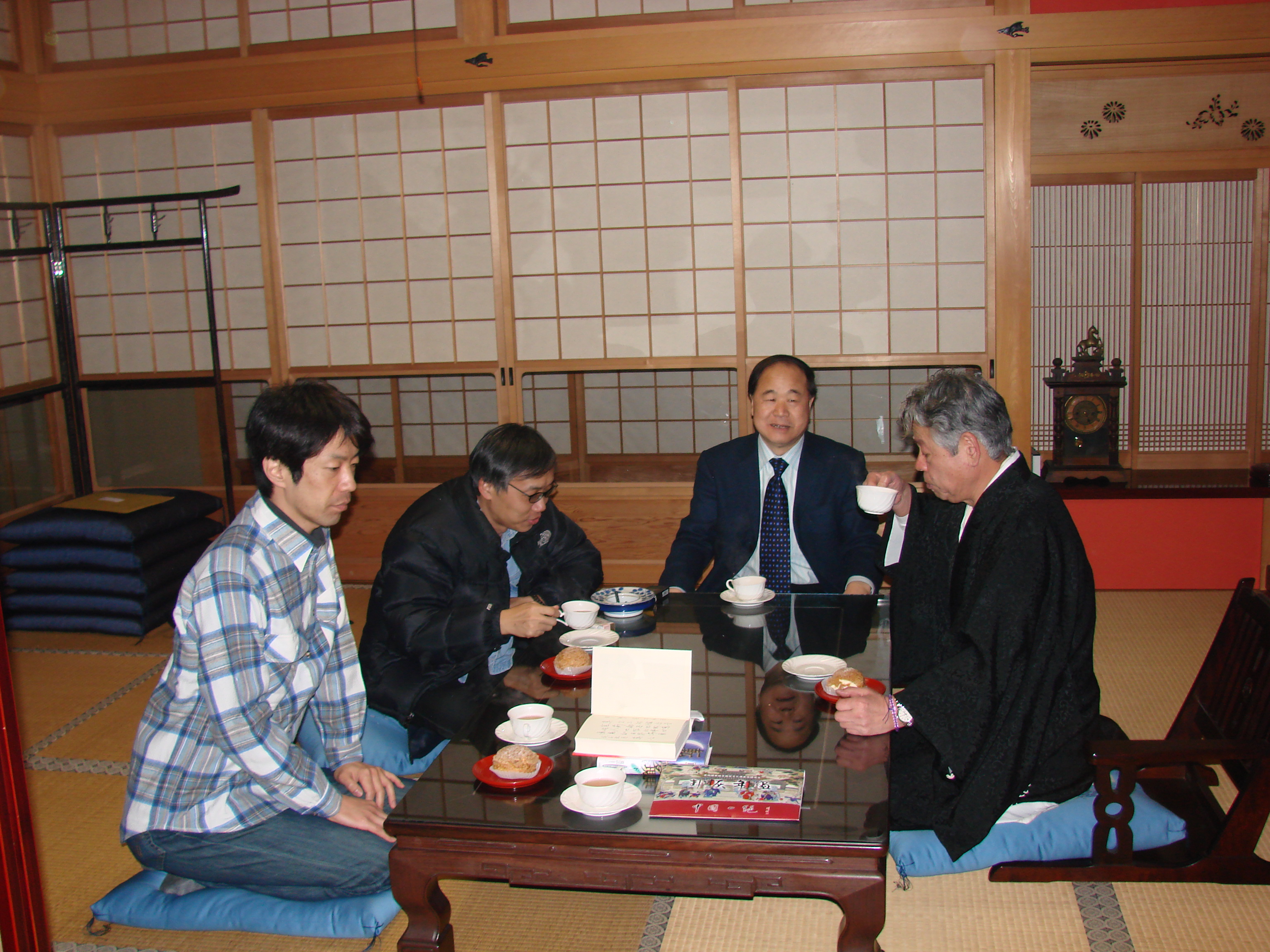 全く一面識もない諏訪さんだが、私の方から突然電話をかけてみた。「莫言さんとお話されませんか」とやや強引にお誘いした。それで寺にお越しになられた。法要後、深夜まで酒を友として談義は続いた。さらに翌28日の昼食まで、寺と園児交流にもお付き合いくだされた。