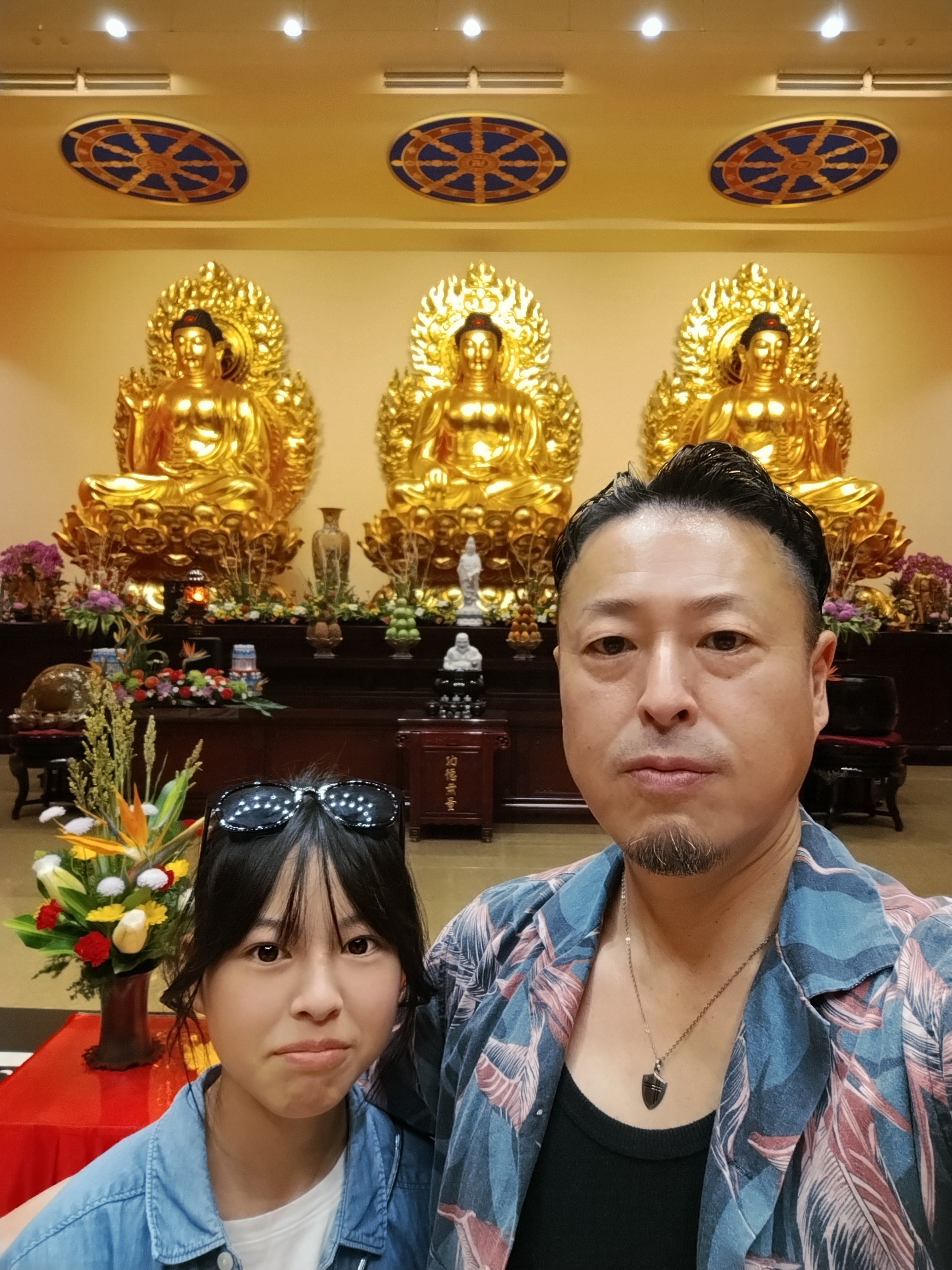 タクシーで乗りつけ、私と同じく小汚い格好で掃除をする門番らしい小太りの親父に声を掛けるが、施錠された本堂内には入れてもらえず台湾語で帰れと注意される。仕方なしに荷物を降ろし、数珠すらないが御堂の縁側で合掌し、ムッとした分だけ大きな声で、パーリ語『三帰依』と短いお経である『三誓偈』をお勤めし、寺務所へと寄ってみた。受付にいたボランティアの女史から「バックパッカーか?こんな場所の寺にどう巡り着いたのか?」と聞かれ、また折角だからと書棚から書籍を一つ呉れるというので『浄土五経』を頂戴した。