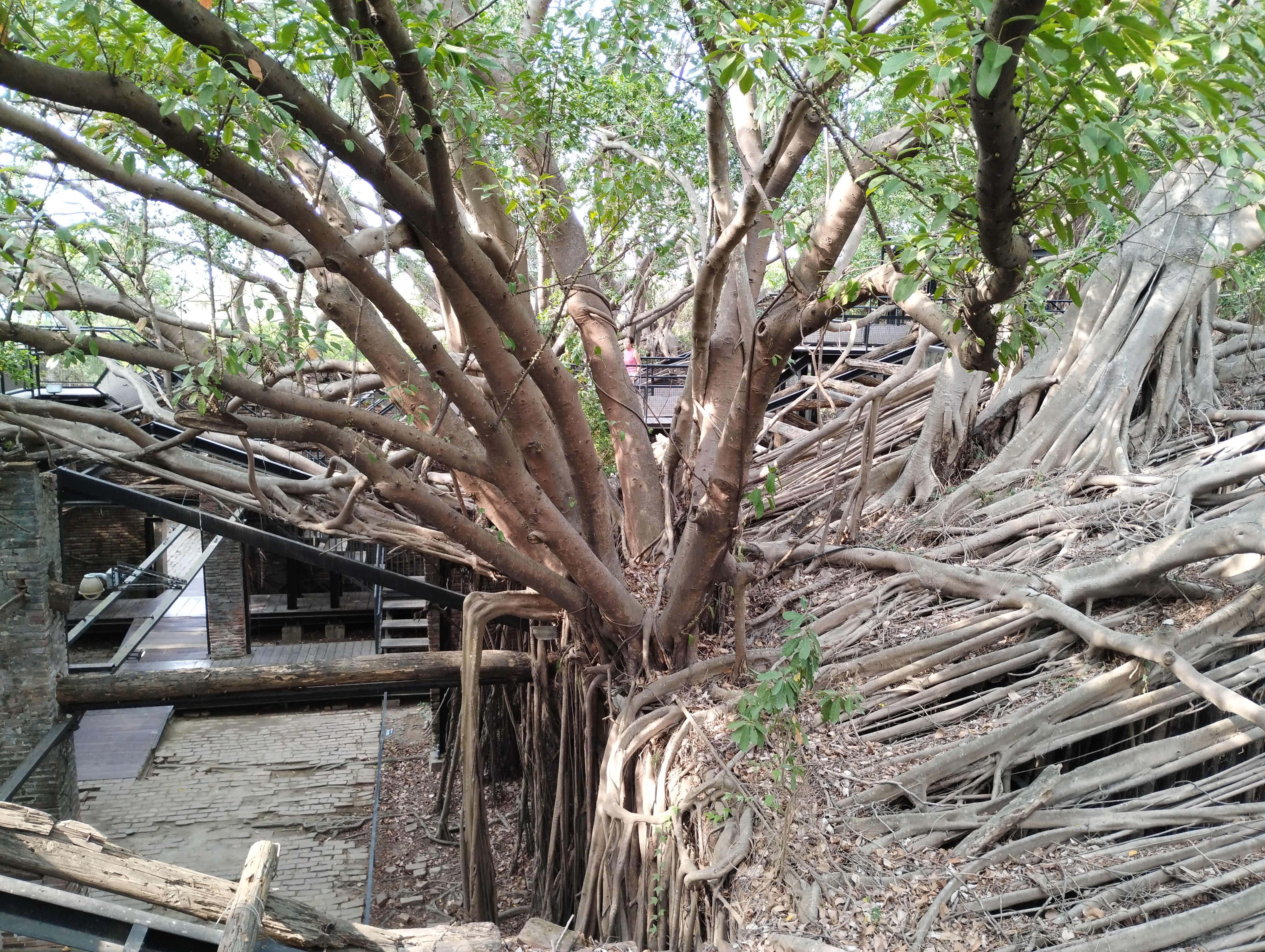 宿に到着すると、我々の部屋は5階だというが、エレベーターがない。チェックインは先延ばしにして、誰もいない1階カフェカウンターの裏側に荷物を置き観光にでた。家族旅行らしい、用水路のマングローブを散策するボートツアーから。25人ほど乗れる板状の平坦なボートで、船尾に付いた小型エンジンを操る船頭が、ガイド役も兼ねるが台湾語では何もわからない。しかし1列目の先頭を陣取った我々は、ギリギリの高さの枝ぶりを頭を屈めて避けるのが大変楽しく、また他のボートとすれ違うのに、外国人のノリの良さに便乗し歓声をあげ楽しんだ。また安平街にあるガジュマルの樹木が浸食した茶屋など、台湾らしい自然を満喫しつつ、宿に戻るとぼちぼち旅慣れてきた娘達も別行動で喫茶店へ行くと言う。私は喜んで千圓(約5000円)渡して送り出し、妻と2人で、地ビールを飲んだり軽食を食べながら近所を散策する。