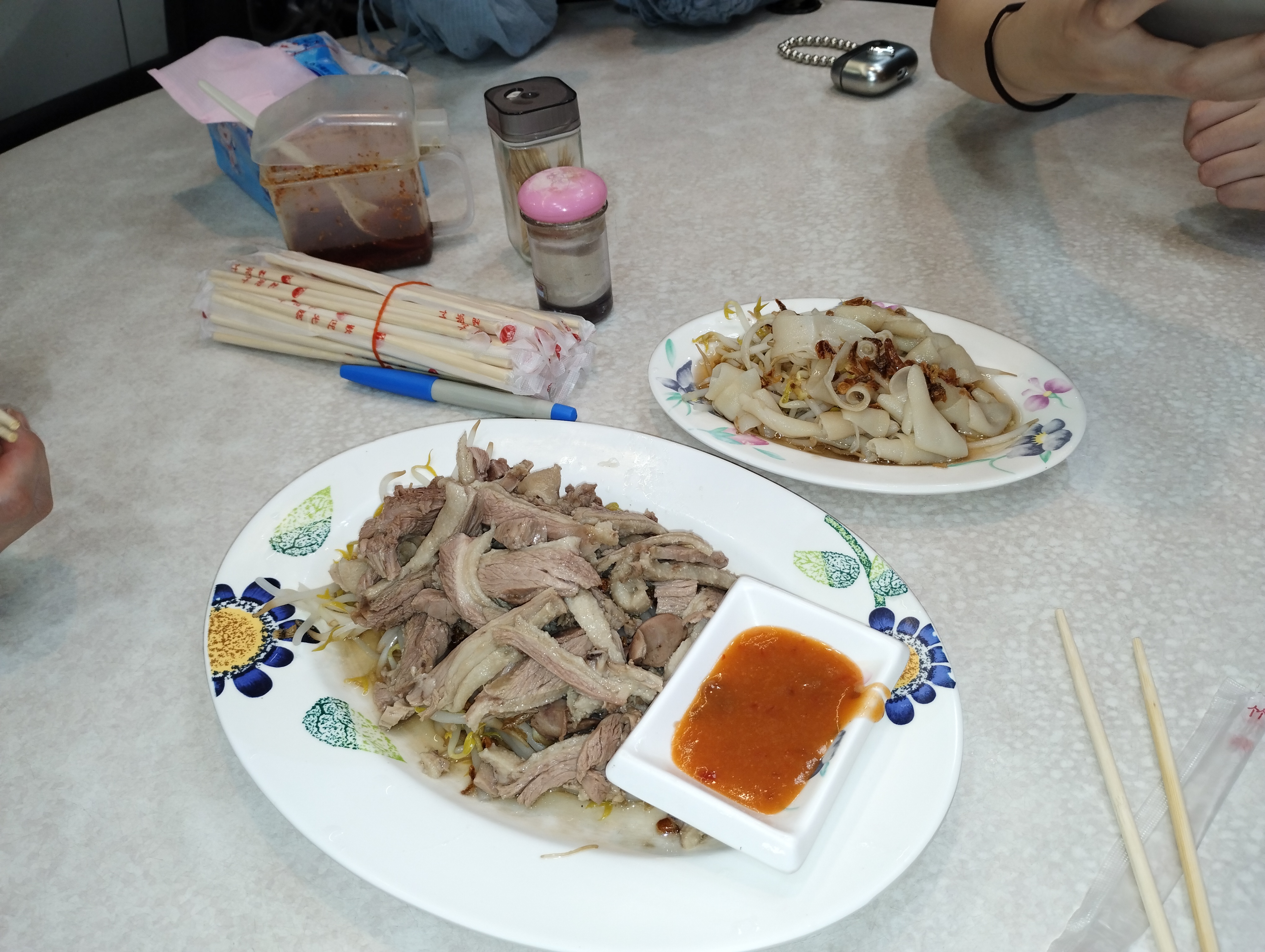 夜にはその外観から、通りかかるたびに「きっと美味いに違いない」雰囲気から狙っていた、交差点角にある「鵝肉屋」へと挑んだ。鵝肉とはガチョウのことだと知ってはいるが、毎度の様に渡された注文用紙は漢字だらけで何を食べて良いのかわからない。家族はスマホの翻訳機能を利用しているが、訳された言葉が意味をなさない。こんなとき、旅人の智慧はこうだ。グループ分けされた一番上のメニュー、つまり店の推しの「看板メニュー」であれば間違いない。この店は午後7時から朝5時までの超人気店であり、歩道上のプラスチックテーブルで額の汗を拭いつつ、極上のガチョウの肉に味噌だれをつけ、コリコリの臓物や炊き立ての油飯を皆で胃に掻きこんだ。
