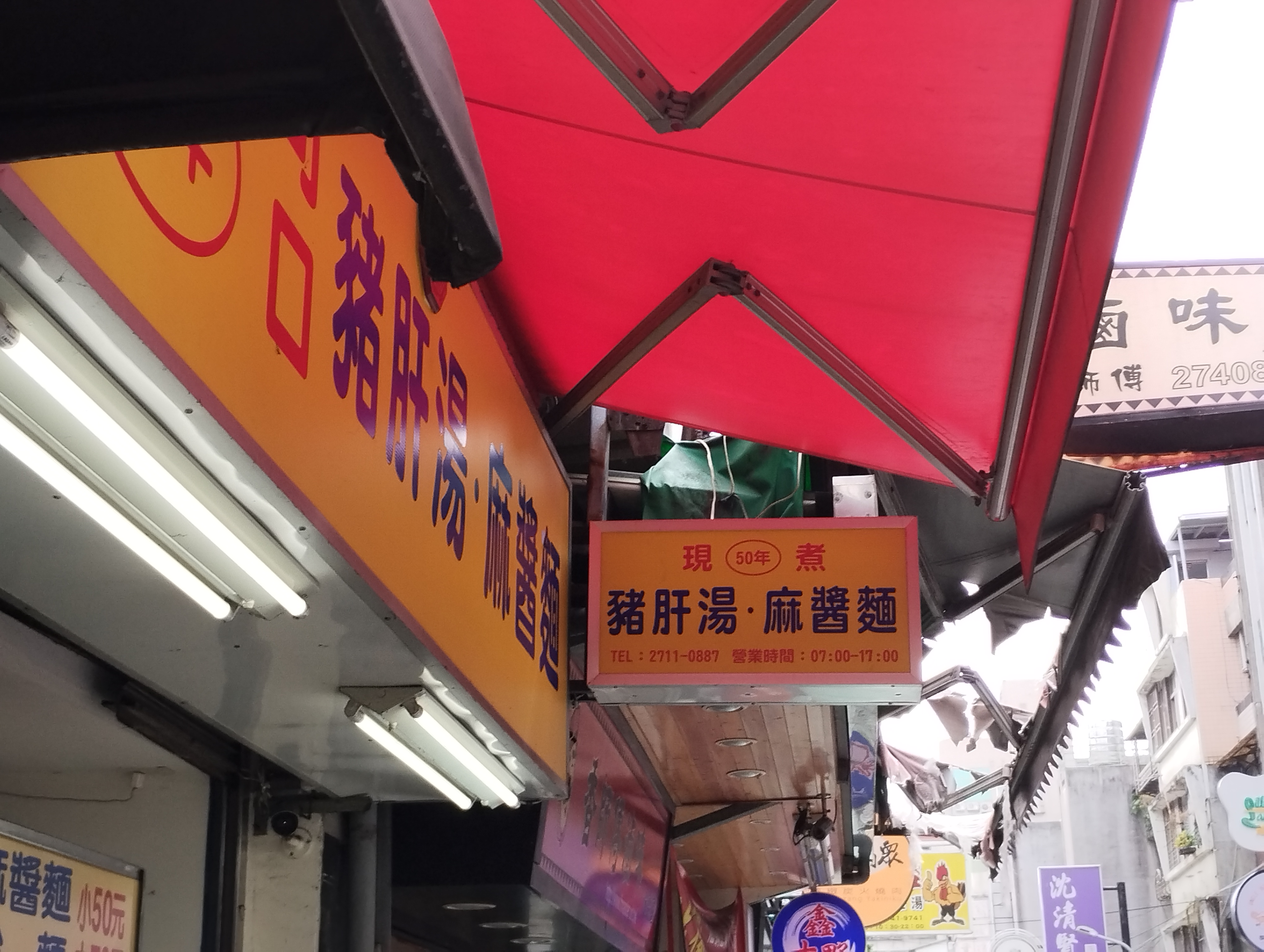 台北路地裏の麻醤麺の老舗 豚のレバースープも絶品